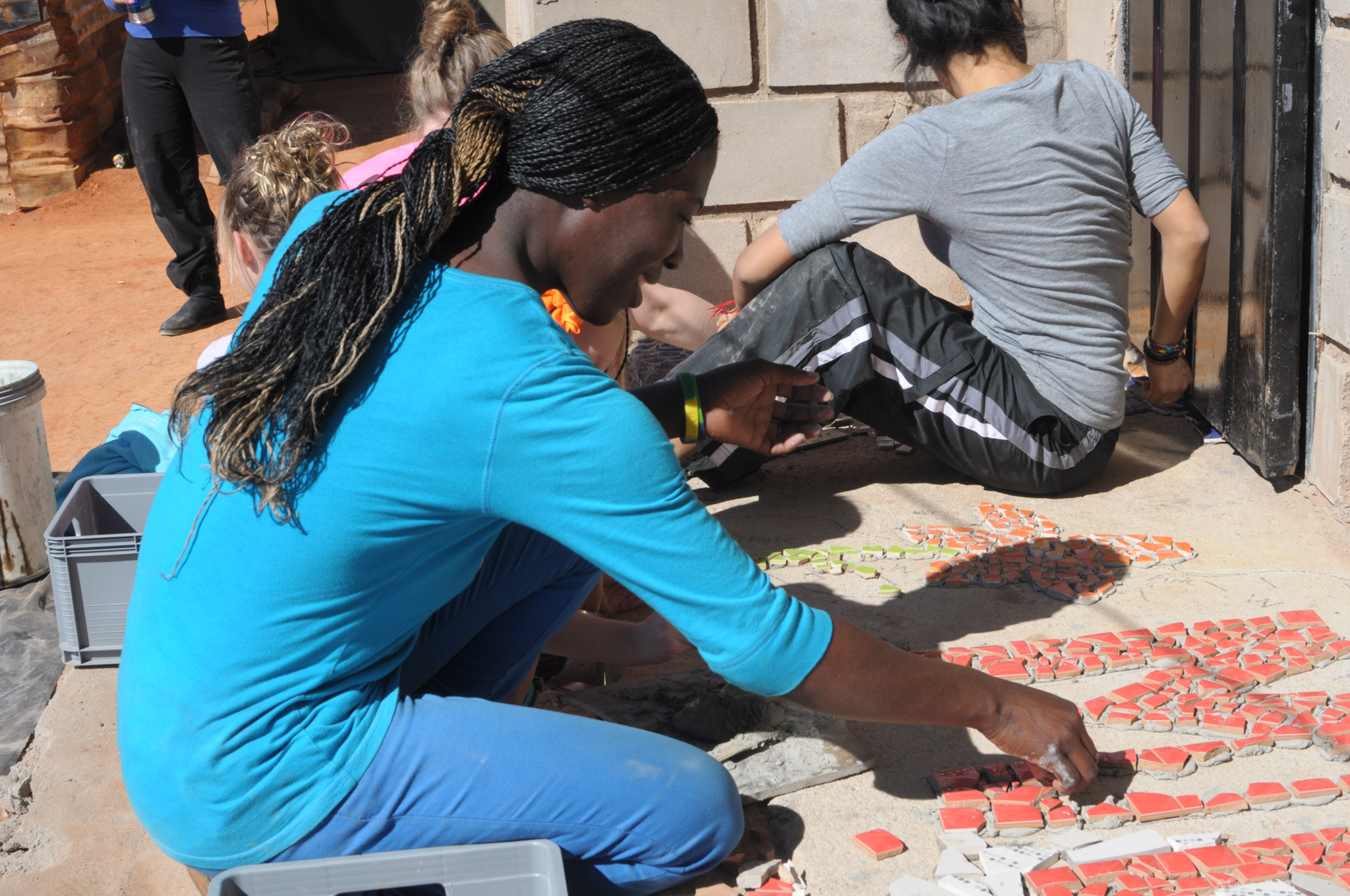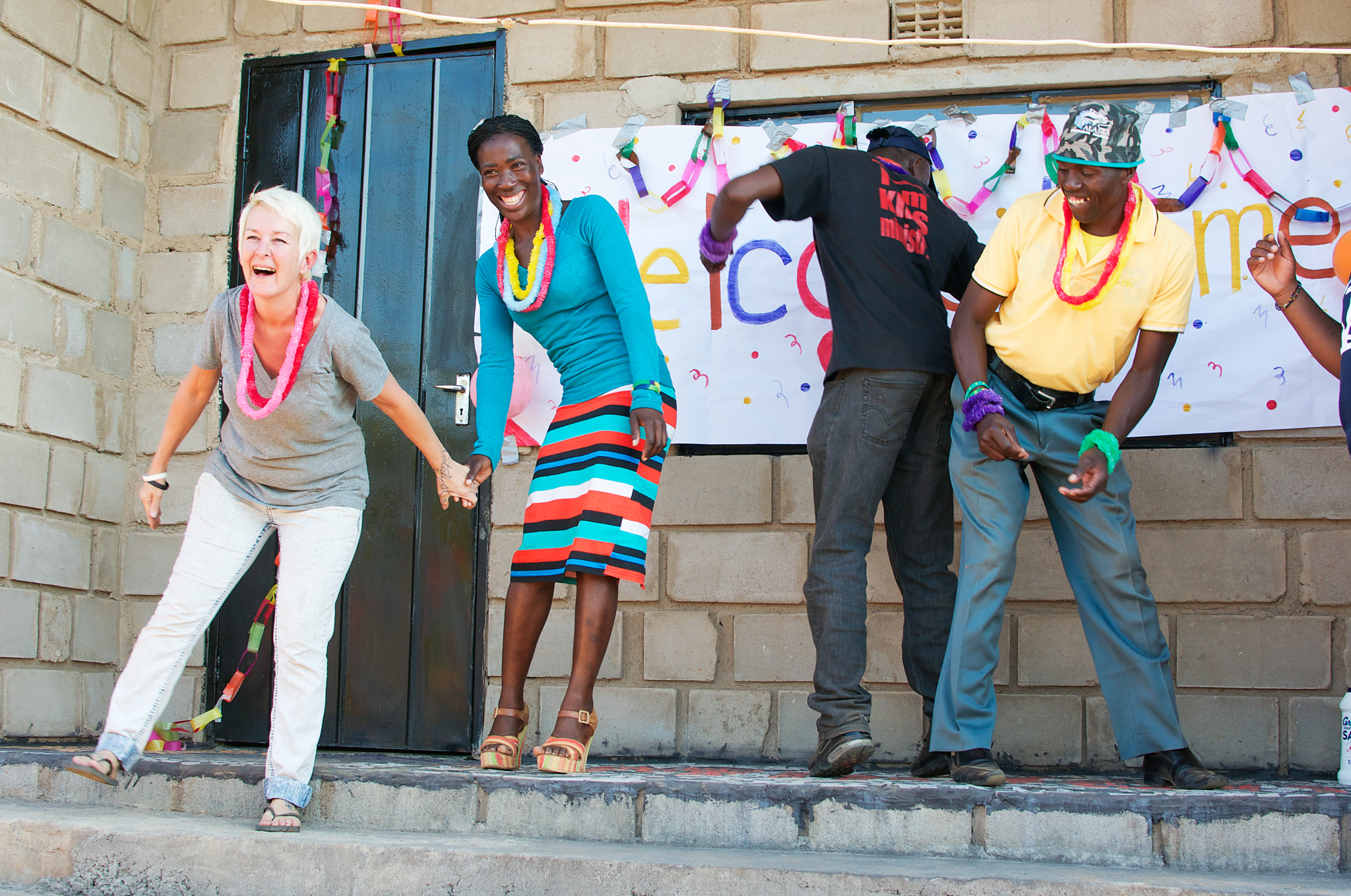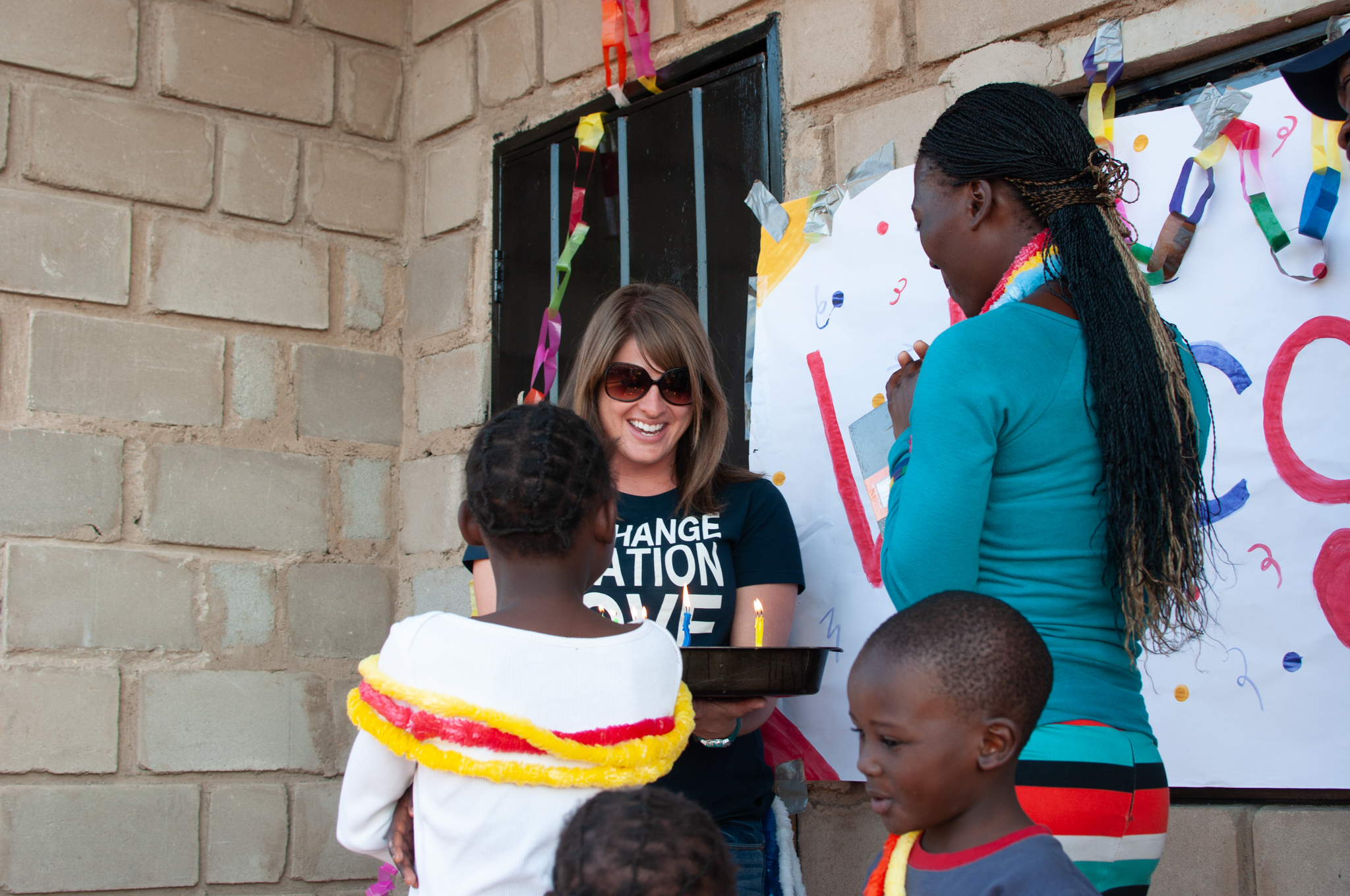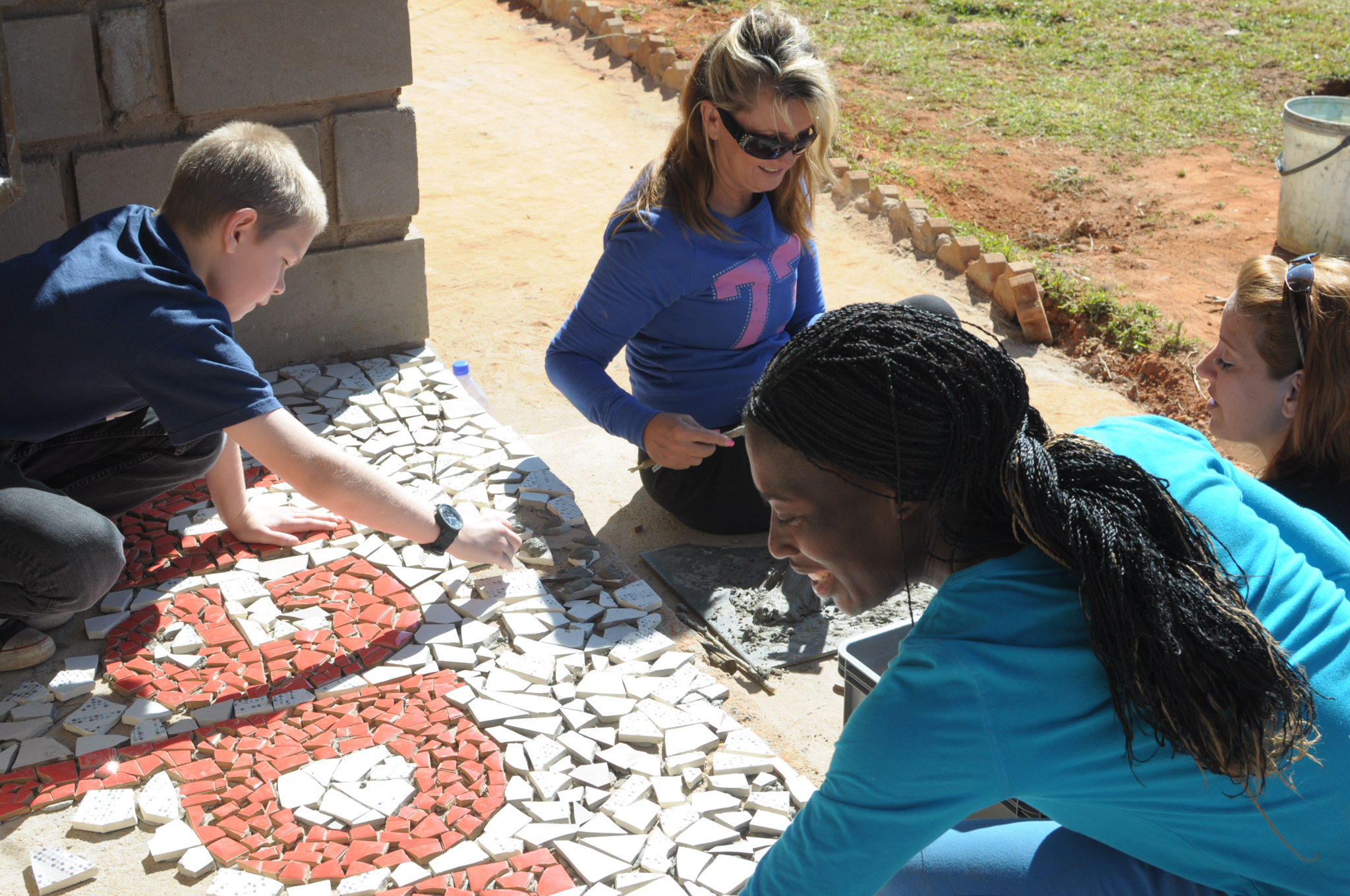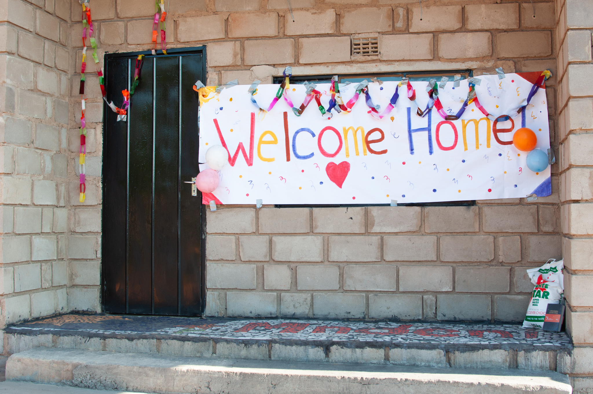 Only three months after that first visit, it was time to celebrate by presenting Sfiso, Lizzie, and their children with their very own home. We not only celebrated the fact that their HOME was finished, but we celebrated Lizzie’s birthday, because as the mosaic on their doorstep reads, and as Sfiso so clearly says it, they have become mndeni or family.